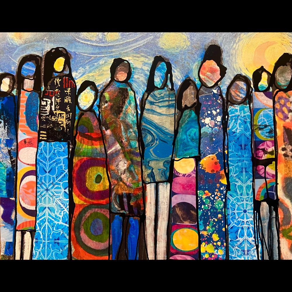 An idea takes shape through fluid paint and layered collage, where light, texture, and chance meet to reveal depth and quiet rhythm. The surface reveals texture , light and the unseen story beneath.