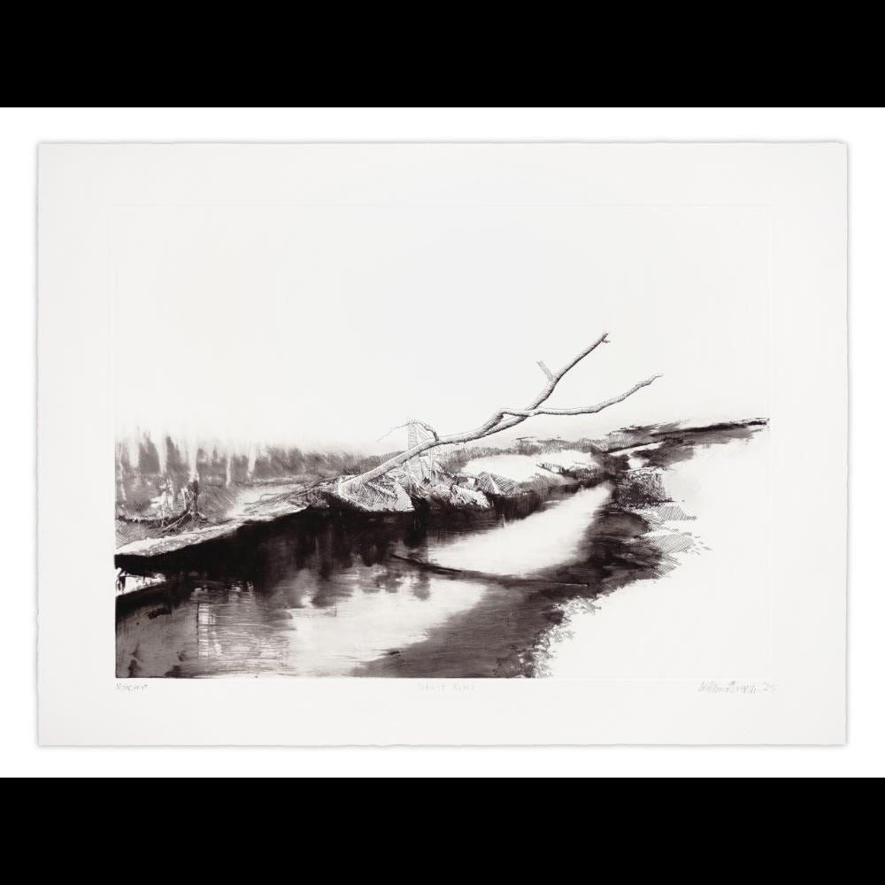 As an artist with a family history of Alzheimer’s, I am deeply interested in the concept of memory, specifically the way things are remembered. I see the landscape as medium for conveying human emotion and I find evidence of the past present in the landscape, or the way memory is preserved in the landscape, to be captivating. Largely I am interested in exploring what remains of the movement of the glaciers that carved the landscape thousands of years and finding human stories in overlooked aspects of the developed landscape. I have found that the sculptural quality of carved copper plates has an emotional character that I find similar to that I experience when observing the way glaciers carved the landscape. The brutal chemical burns and chaotic reactions found in etching remind me of weathered concrete and rust and I prefer to work in etching when making observations about development.