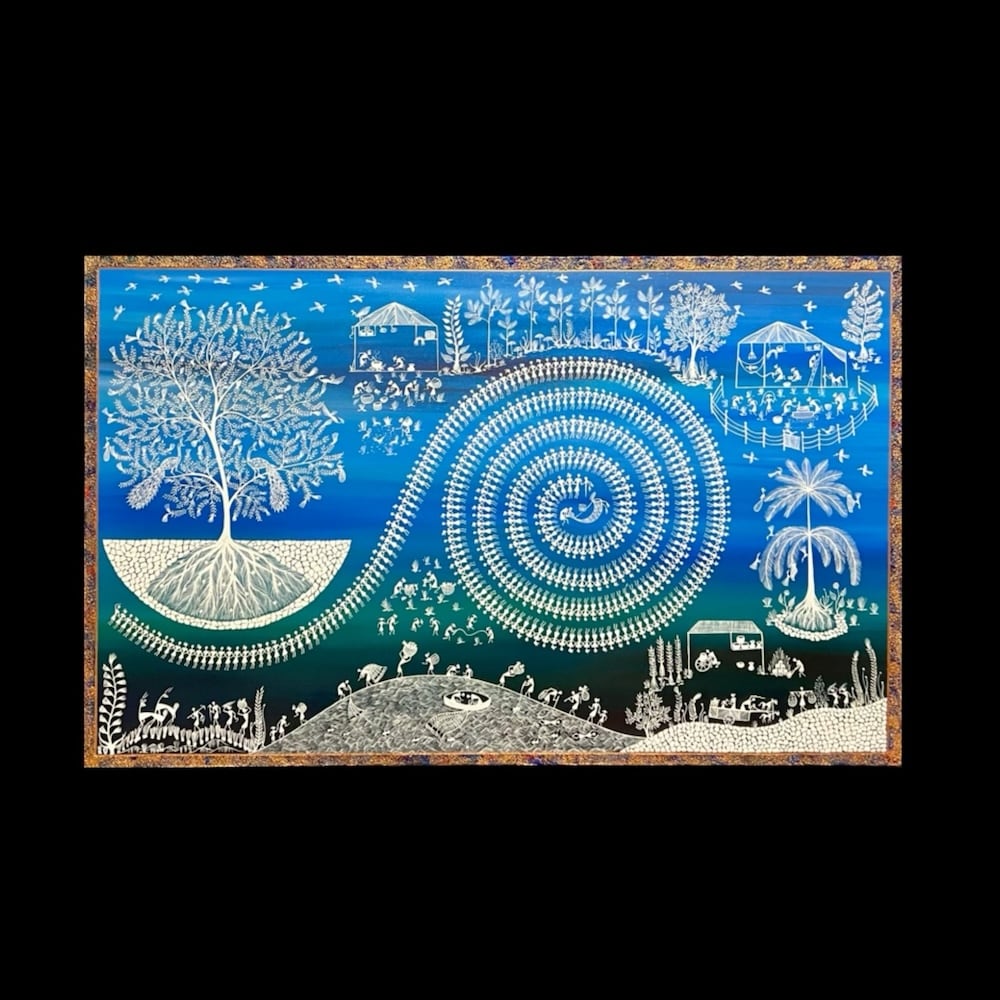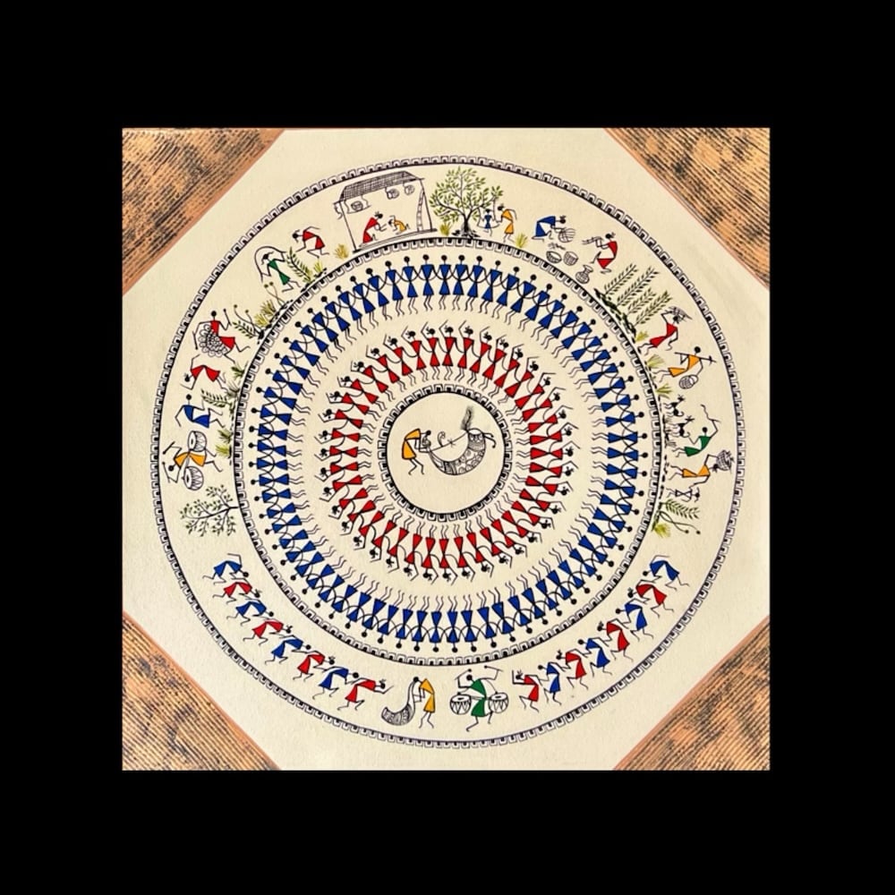 Growing up in India’s rich heritage and culture I am influenced by beautiful traditional folk art - Warli Art which speaks to us the significance of man’s relationship with nature and his community. These paintings are not just drawings but it's a legitimate effort to keep the authenticity of the tribal art. These paintings are the mode of expression of the tribe and a medium to pass down tribal culture and history across generations. My journey as a Warli Artist is from Tradition to Modernity, I love to blend traditional techniques with contemporary themes. Each piece I create is unique. The joy of mixing colors and watching a story unfold on the canvas fills me with excitement every time. The process of creating Warli art is like a journey, where each stroke reveals a part of the narrative. As I bring the simple geometric forms to life, stories of daily life, nature, and community unfold before my eyes. Each detail adds depth to the story.