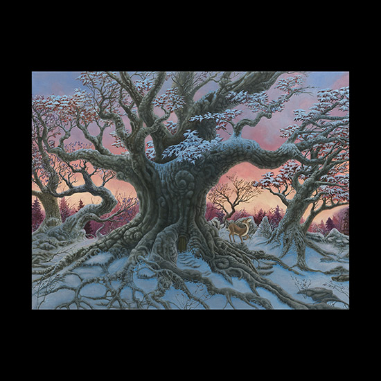I paint in oils for the majority of my pieces. I enjoy using bright, vivid colors, fine details, and mythical themes in my art to convey a sense of mystery and wonder.
