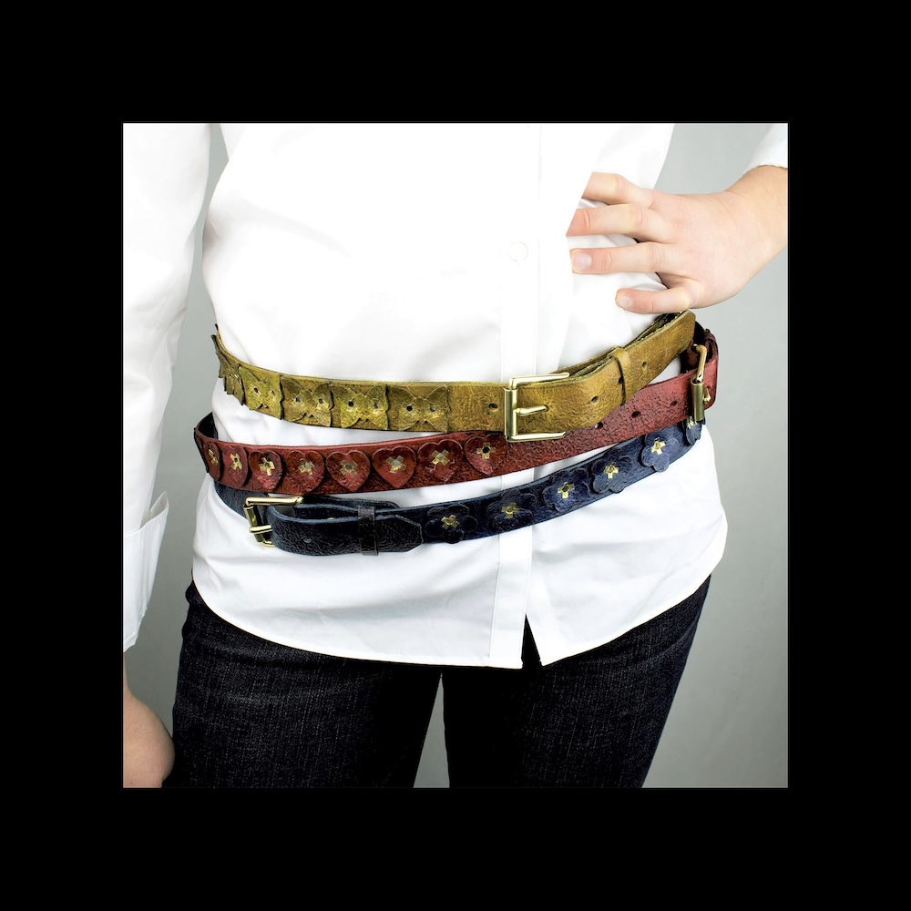 I love being a designer maker and feeling the connection to my materials, leather and metal. They are such opposites. The colors, shapes and textures of leather have unlimited possibilities, but “the rules” of metal smithing force me to think outside the design box, like incorporating modern techniques with old-world skills. Coming from the fashion business where everything is massed produces, it is very important to me that you can still see the “hand” in all my pieces.
