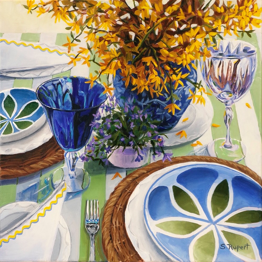 Inspired by everyday scenes of decor, fabrics and cooking, my art is infused with a unique color palette combining different pattern combinations and painting with a hint of realism. I work primarily in acrylic, but enjoy working in watercolor and watercolor inks.