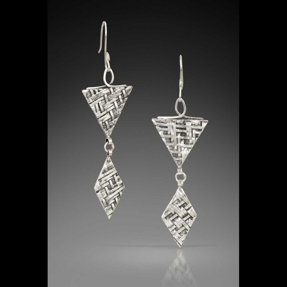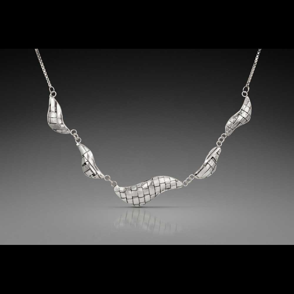 I love textures ad weaving the metals works for me. I may see a piece of fabric or a palm fron in my back yard, a chair in an antique store, a hat on a client. I see textures everywhere. Since I hand fabricate all the pieces they are unique and one of a kind !