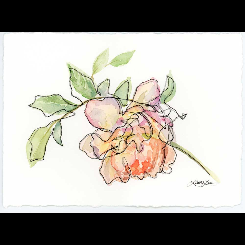 My current focus is florals. I love painting flowers for their grace, delicate petals, varied shapes, and captivating colors. I’m drawn to dramatic compositions, exploring light and shadow with influence from Impressionist painters. In my work, I experiment with reflective light, color, loose brushstrokes, and bold perspectives. I also explore contour line drawing, blending gestural elements with realistic watercolor. I enjoy how pencil and ink lines guide the eye, while watercolor unifies the piece.