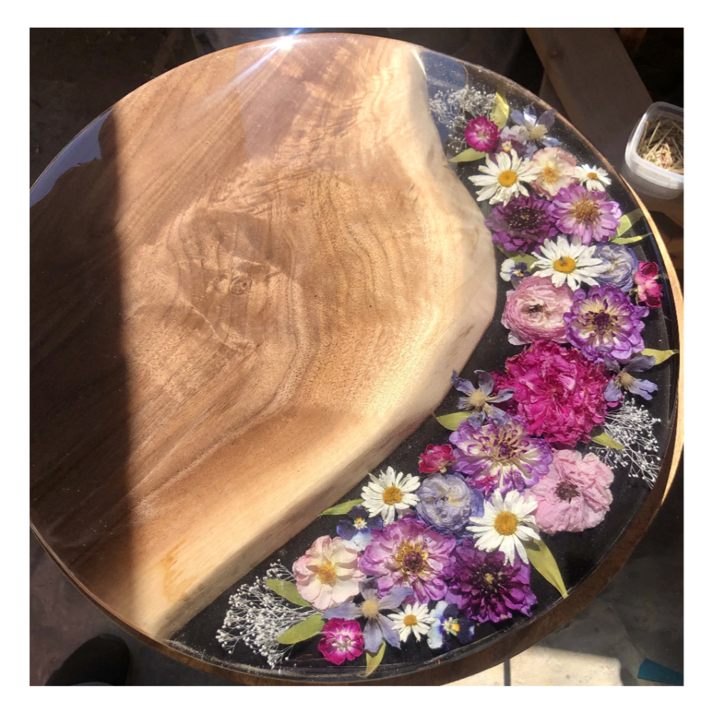 During Covid I fell in love with wood working. Then I made a few river tables. Learn how to dry my owe flowers to put in them. Table are expensive! So I decided to make items with a purpose that everyone could afford. I love flowers/ gardening and woodworking. So my hobbies turned into a passion. Which now i get to do what I love for work. Which is great!