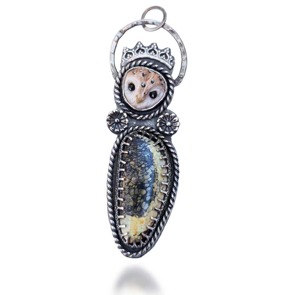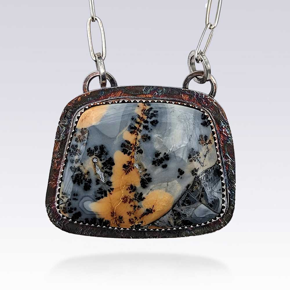 Working in my Bucks County, PA studio, I make jewelry that often combines elements to tell a story: a sterling silver bird soars over a landscape created from a colorful picture jasper, or a fine silver deer leaps over a stream made from a gemstone. I want my jewelry to put a smile on your face. I'm inspired by my travels and my love of art and literature.