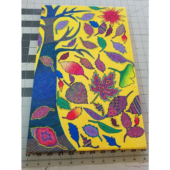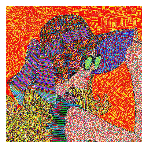 I use fine point markers to make 1 tiny dot at a time. Over the course of weeks and months hundreds of thousands of dots fill the canvas and create these colorful images.