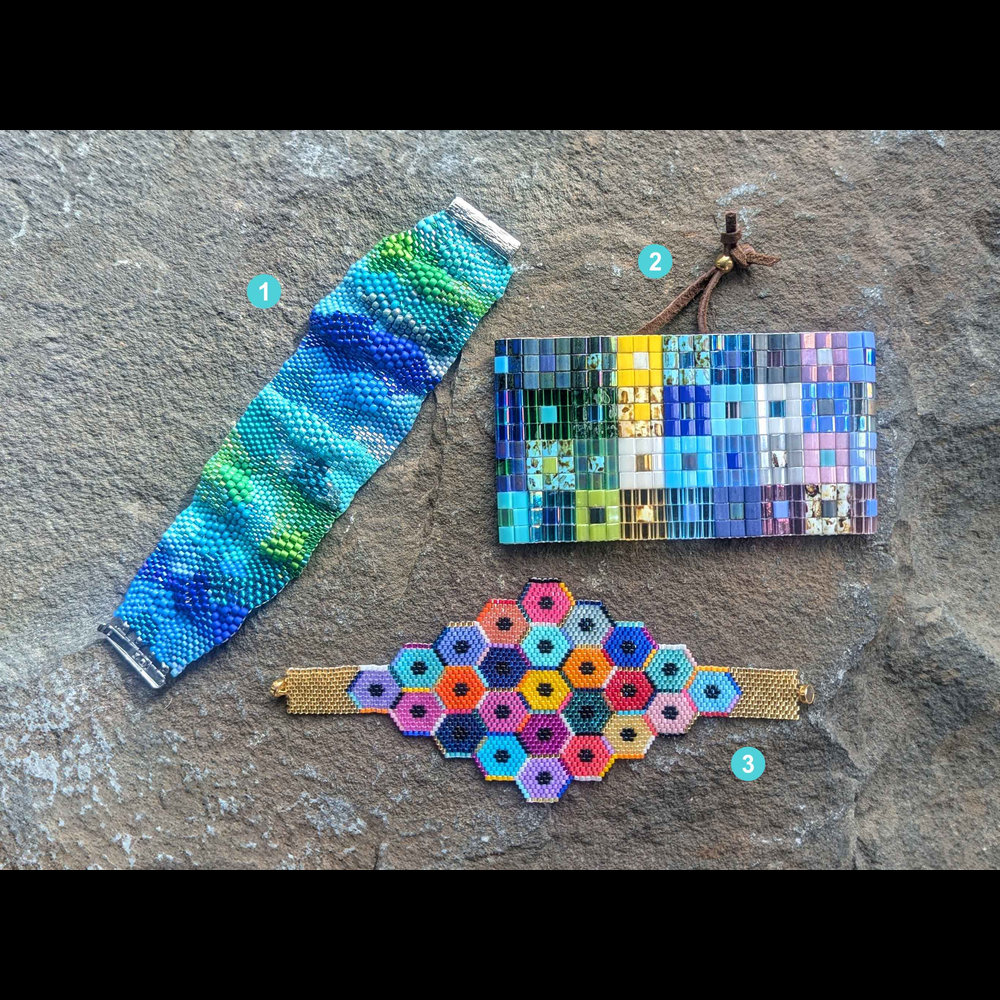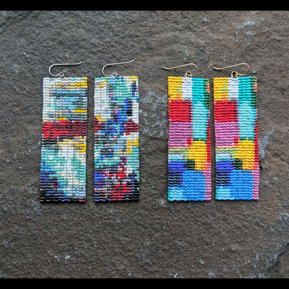 Inspiration is drawn from abstract art, stained glass windows, kaleidoscopes and mosaics. Each piece is unique. They are vibrant pieces designed to add a dash of color to your life.