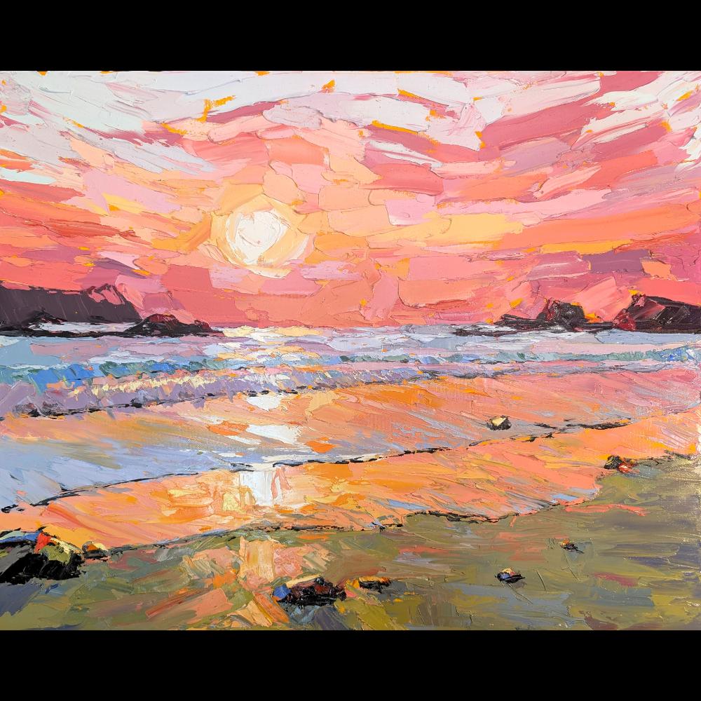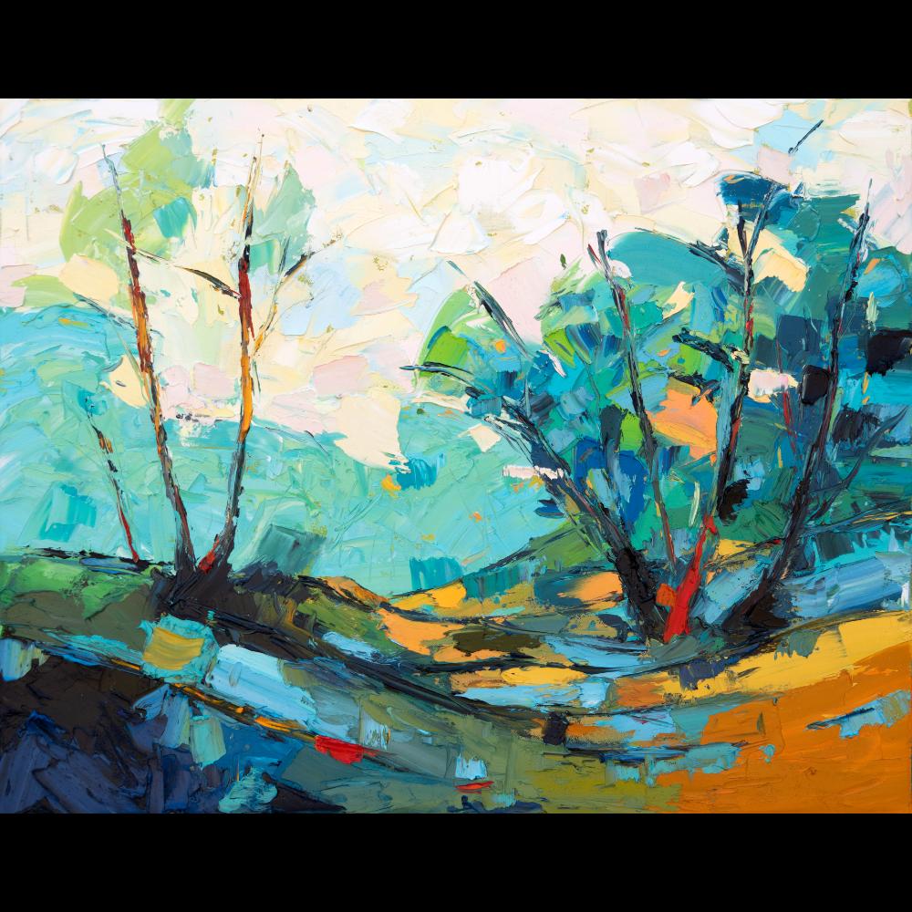 I thrive on putting together striking palettes, mixing giant piles of oil paint, and spreading them onto canvas like butter. My paintings are inspired primarily by nature, and by the beauty and color of my surroundings traveling in my Airstream.