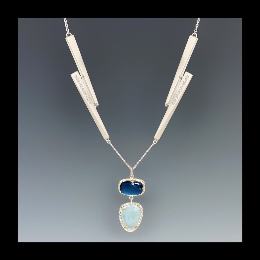 Bold, Simple, Geometric Art Jewelry with an eclectic edge: inspired by the raw beauty of nature, sacred geometry, simplicity, and patterns. Geometry illustrates relationships of points, lines, angles, and surfaces. Geometry is a configuration of parts. Nature is organic denoting a relation between elements that fit together harmoniously. We can decompose nature into isolated bits but it is incredibly special when you find beauty in the simple bits and create new relationships with one another. Exploring how a simple shape can be reinvented and echo the graceful organic characteristics of nature. The work has a minimal aesthetic and is an evolution of a form into wearable art.