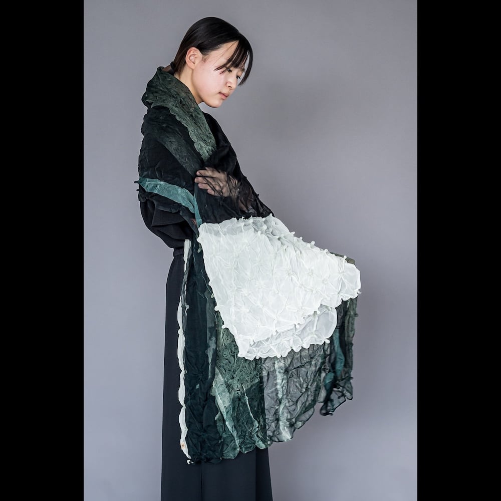 Yuh Okano, a Japan born, for 20 years textile artist in Brooklyn NY and moved to Chestertown MD in 2020 to focus on Yuh's creative work. Yuh's pieces are invitingly tactile. They employ a range of color and texture that strives to be as subtle and finely detailed as the organic forms her works suggest through her signature technique, Shibori. Their soft feel and gently flowing shapes evoke a sense of connection with plant life, flowers, and ocean creatures.