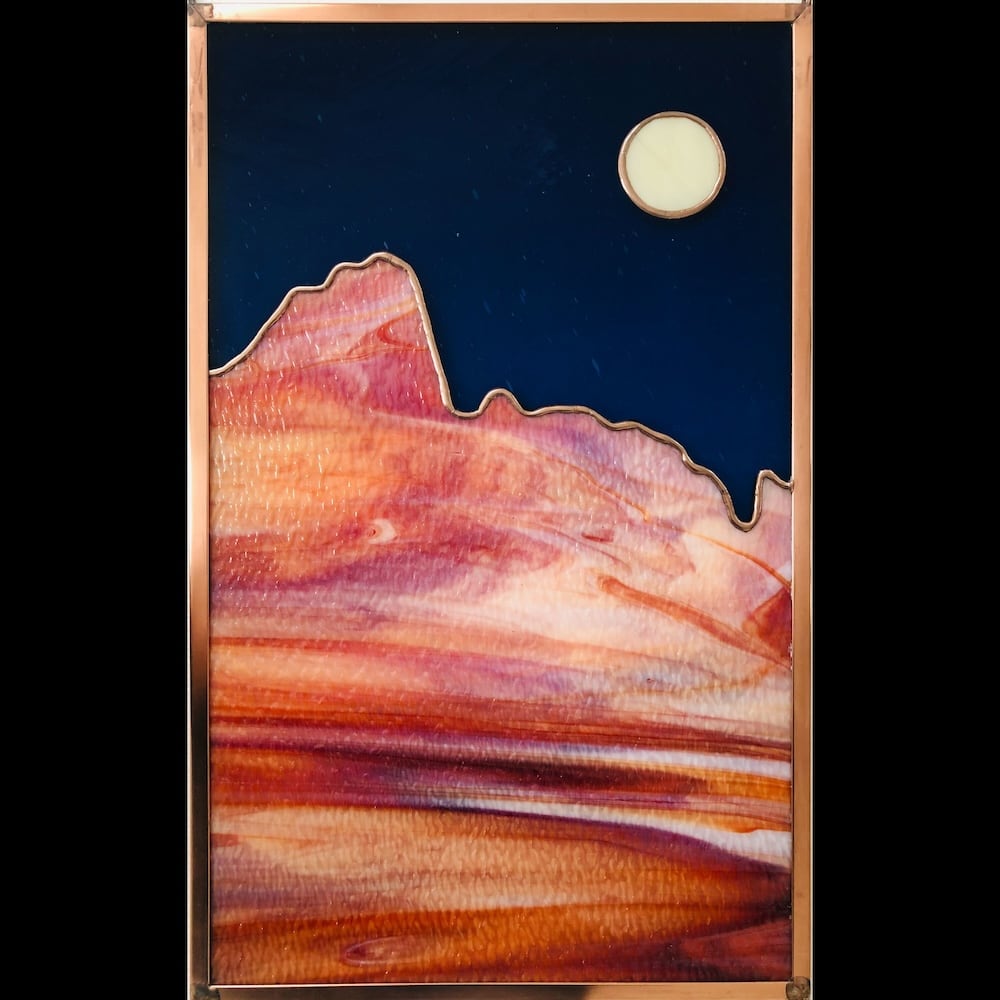 I am a landscape artist who uses glass to capture a natural location’s line, light, mood, motion, color, texture, and season. My aim is to render emotive impressions of natural scenic beauty in stained glass panels. My work succeeds when you feel wind in your hair, sunny warmth on your face, water flowing about you, night chill on your skin, soft fur or slick hide on your fingertips—from experiencing my glass in varying light conditions.