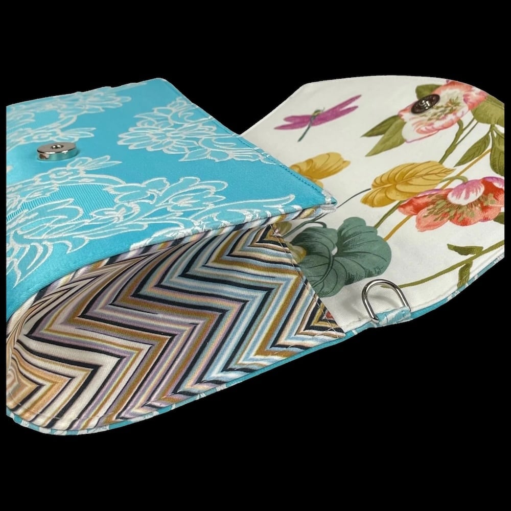 My design signature is a harmonious blending of color, print, and texture. It's important to me that the proportion of print size stays true to the silhouette of the product. I do not have a specific inspirational reference within my work; it's the fabrics that inspire me as to how and where to begin. The weight, color, and print of the fabric "speak" to me and command their ideal arrangements.