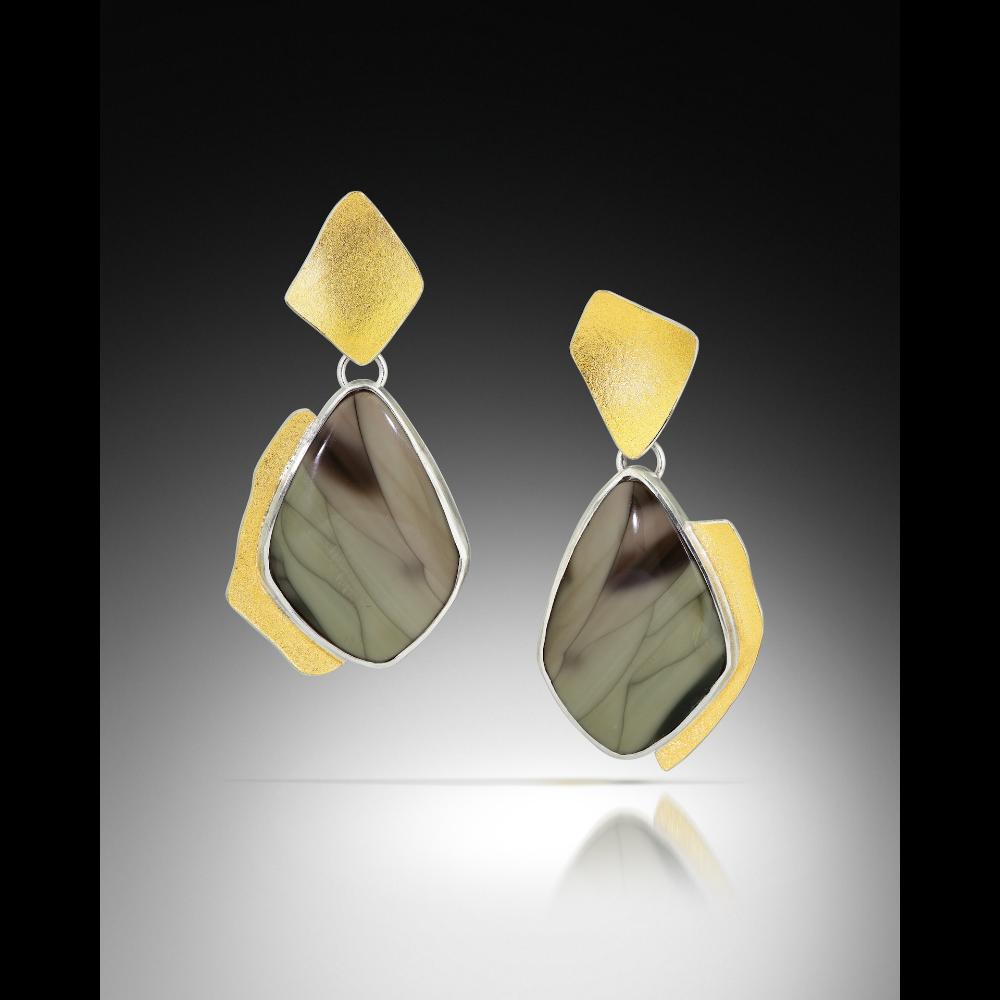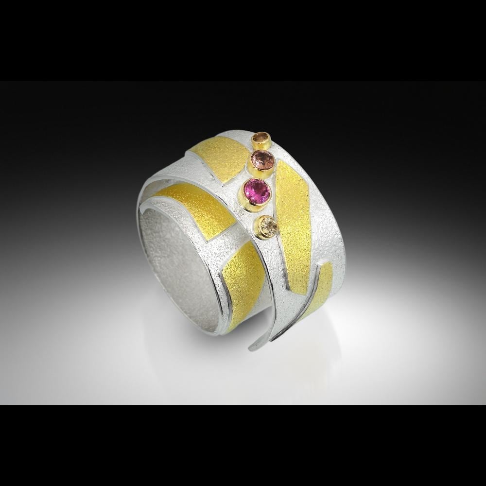 I create modern sculptural jewelry using traditional fabrication and forming techniques. Mixed precious metals, high karat fused metals, carefully selected minerals and gems are combined with an emphasis on luminosity, contrast, form and function. Designing happens at the bench and is largely fueled by instinct, intuition and play. My inspiration is drawn from a variety of sources: natural geometry, natural wonders, modern sculpture and two- dimensional abstract art.