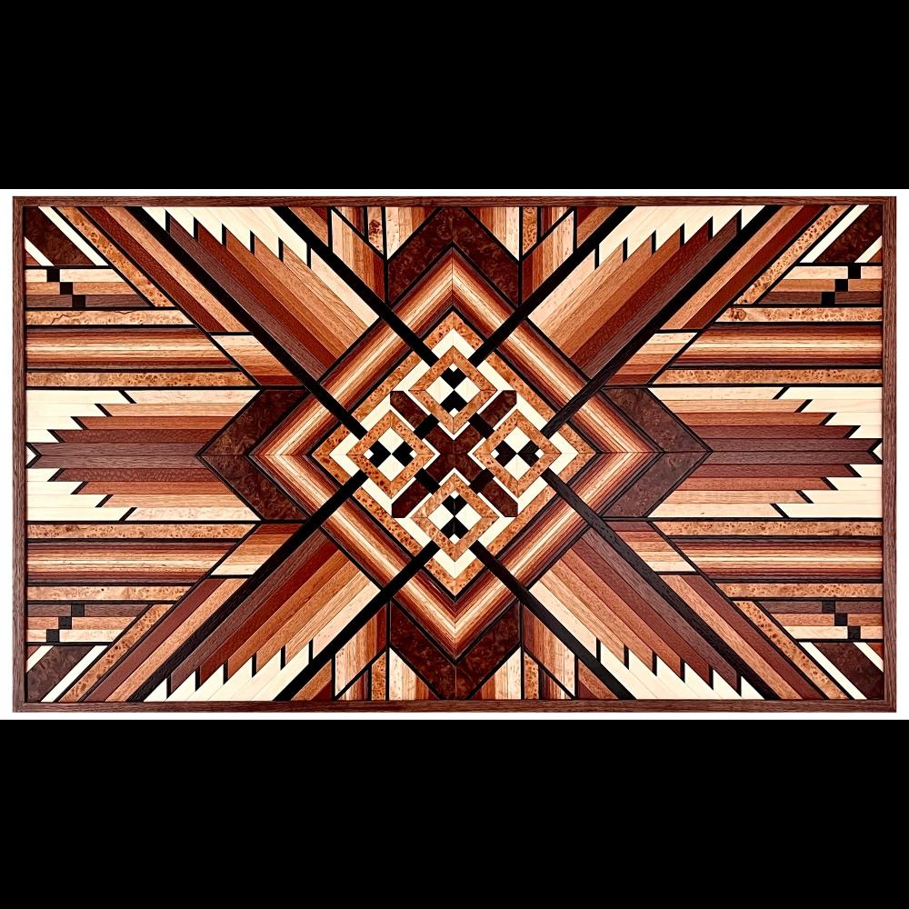 I combine the love of woodworking with the love of drawing patterns to create intricate wooden marquetry art.