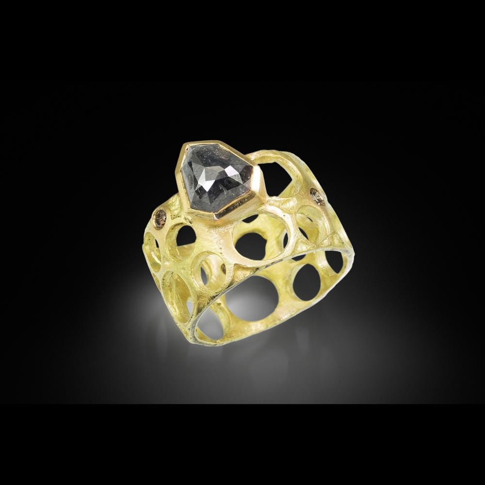 The New York industrial landscape inspires my artwork. My environment is at once tough, gritty and yet exquisite and vulnerable; I find that this disparity comes together in my art where I combine delicate elements withrough cut stones and textural patterns.