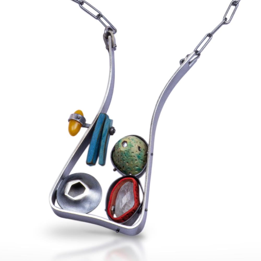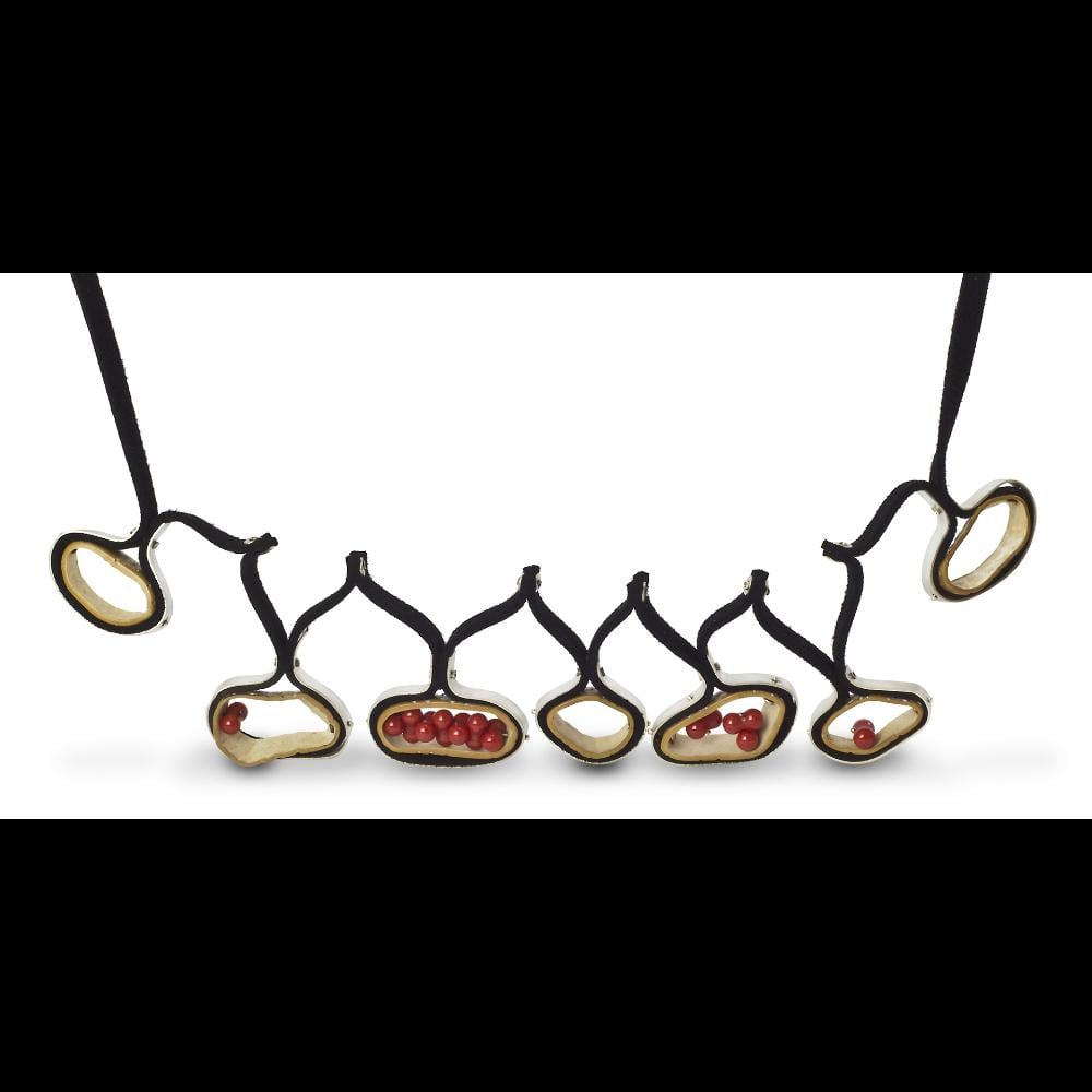 I’ve developed a vocabulary of elements from the materials I work with, dyed coconut shells, banana seed pods. Each piece evolves as these elements inhabit the space in a biomorphic composition. These elements have an intimate relationship with each other, which the viewer is invited to interpret.