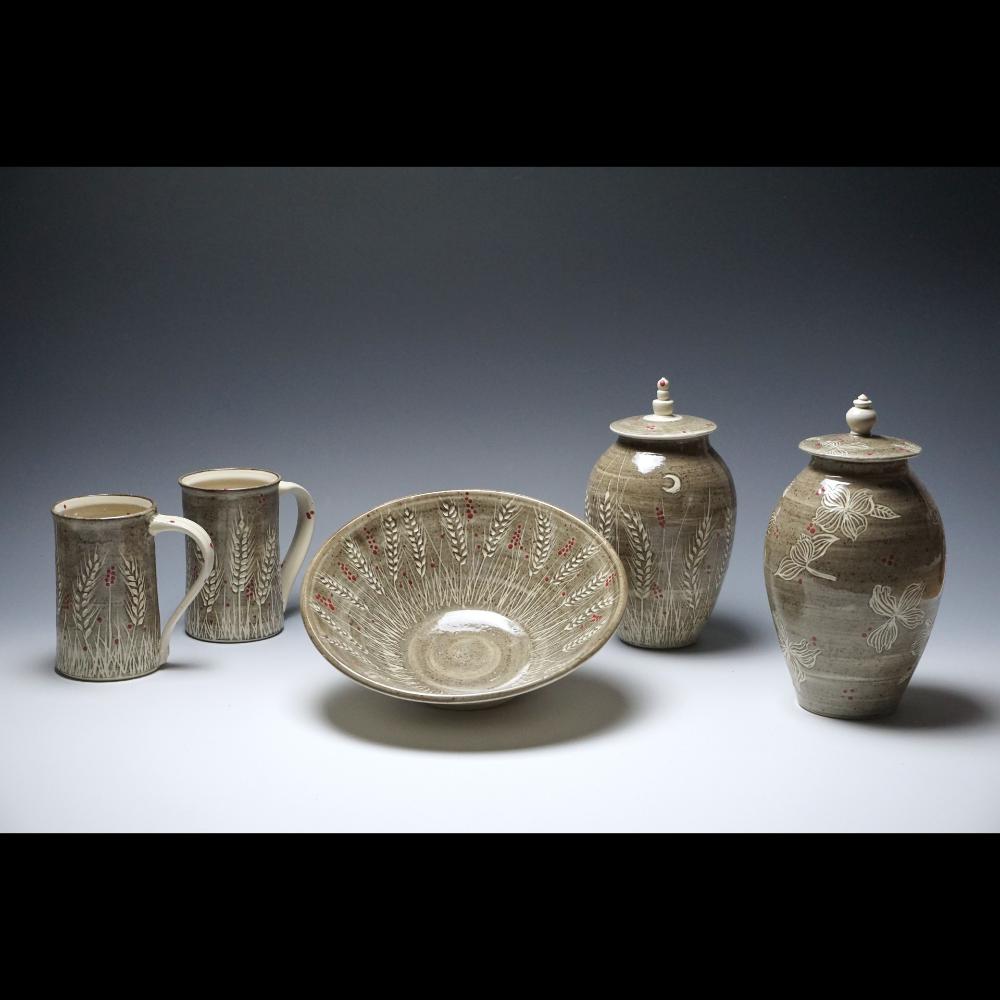 I am interested in objects that offer an opportunity slow down our pace as we enjoy the rituals of eating, drinking and entertaining. I'm inspired by nature's abundance and diversity. My work invites the viewer to slow down and wander through the intricacies of the designs while enjoying a warm cup of tea or the smoothness of a hand pulled handle.