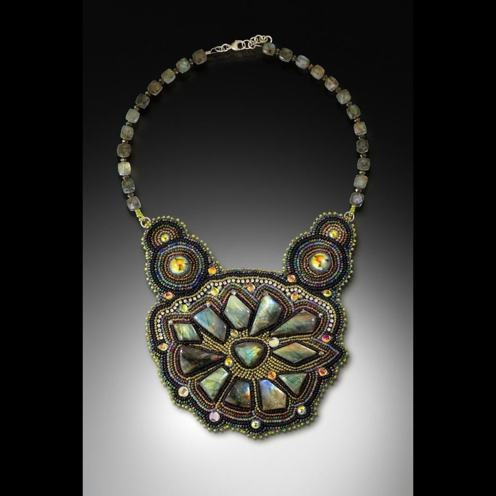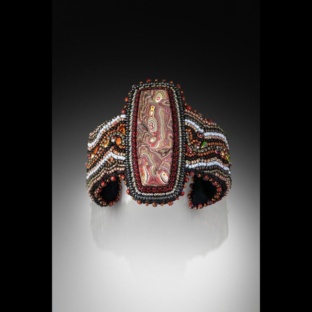 I have always had a love for stones, whether it’s polished or found in nature. Once I started creating jewelry with seed beads, I discovered bead embroidery which allows me to use my favorite stones and to be creative with seed beads.