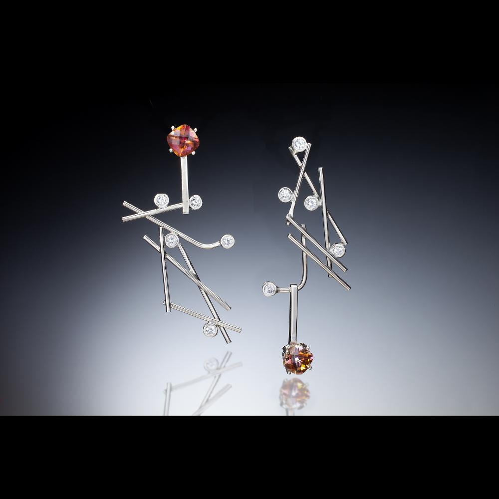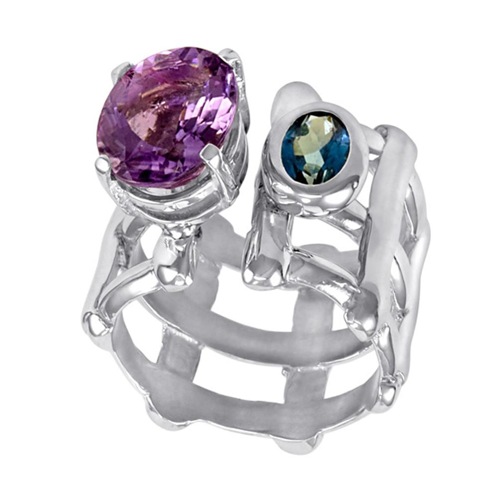Inspired by the structures of nature and architecture, I build my pieces thru a constructivist process. Every element is hand made and soldered together forming unique works that grow organically thru construction. all stones are hand picked and precious.