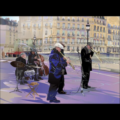 His newest passion, Vector paintings, combines drawing and painting, his two greatest loves. Vector art uses illustration software for algorithms to create images and illustrations. It’s complicated. The software provides an exact equation for the hand of the artist.