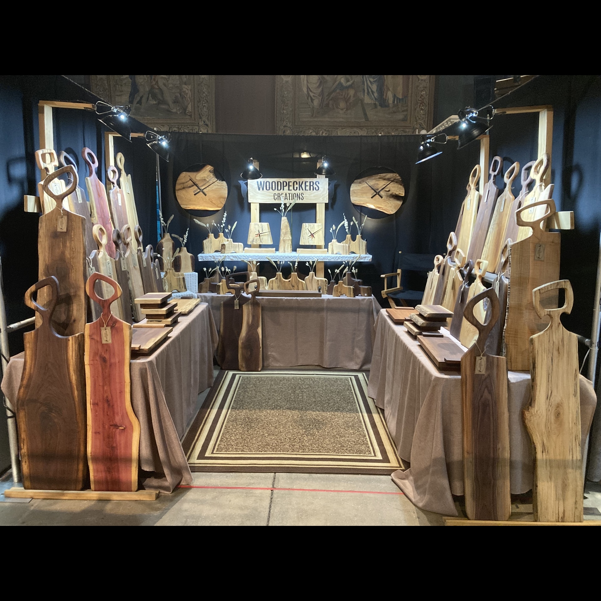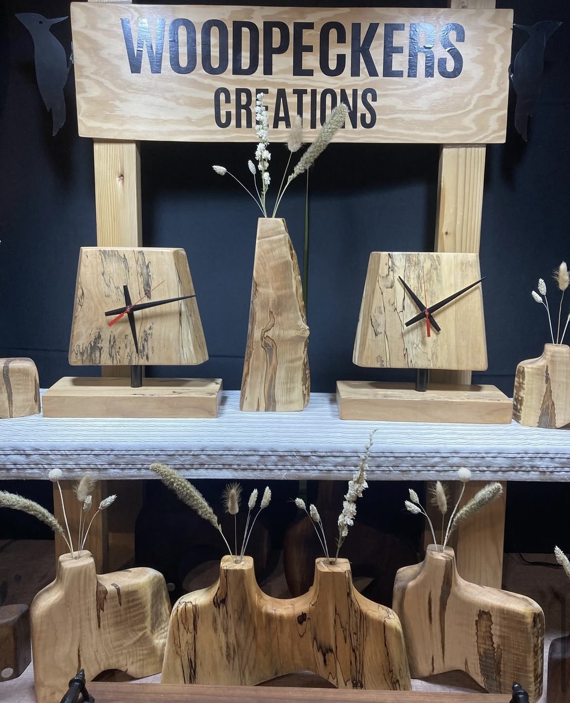 A peek inside his booth, Woodpecker Creations, reveals stunning hues and tones of various woods crafted into eye-catching designs.