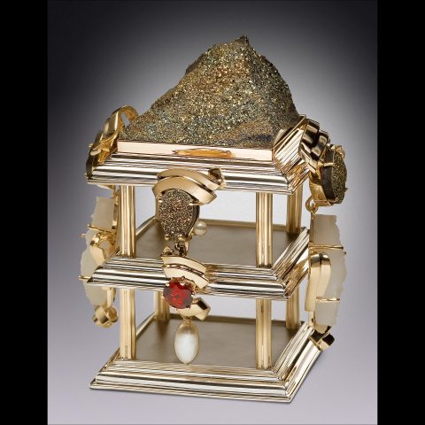 The jewelry elements consist of 14K and 22K gold, diamonds, Boulder Opals, Lapis, numerous colored semi-precious and exotic gems, and pearls. Their techniques involve casting, construction, fabrication, and carving. Skip is Joan’s “toughest critic,” in her words, and as a painter and colorist, assists with the stone decisions.