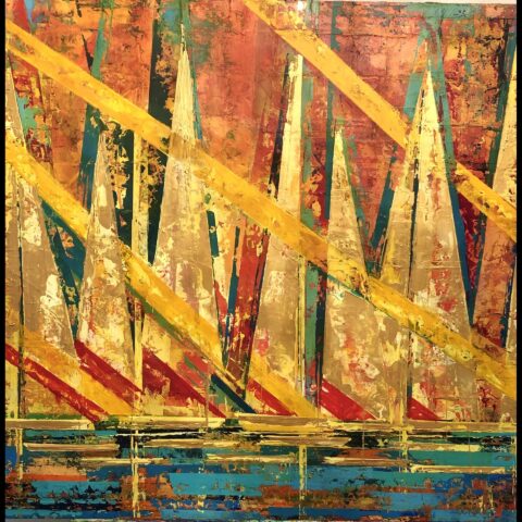 His joy is touching people through his “feel-good” art that combines color, texture and gold leaf on canvas — an effect even more profound reflecting in the light. “There’s enough gray in the world,” he says. “If I’m going to stare at it all day, I need to smile.”
